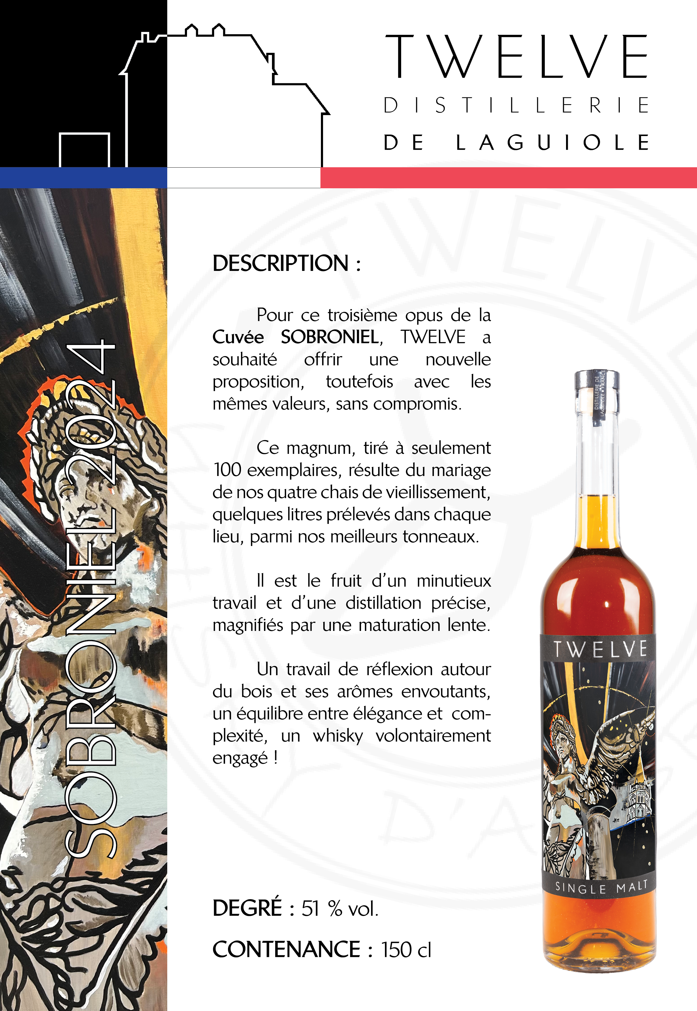 Twelve Sobroniel révèle également une autre facette de la Distillerie de Laguiole, celle d’un lieu d’accueil ouvert sur le monde de l’art, sculpture ou peinture. Une évidence dans ce département de l’Aveyron, marqué par la figure majeure de Pierre Soulages, l’enfant du pays. Cette nouvelle édition arbore, comme la précédente, une peinture de l’ange de la créativité Sobroniel réalisé par l’artiste Toulousaine Marie Bec.